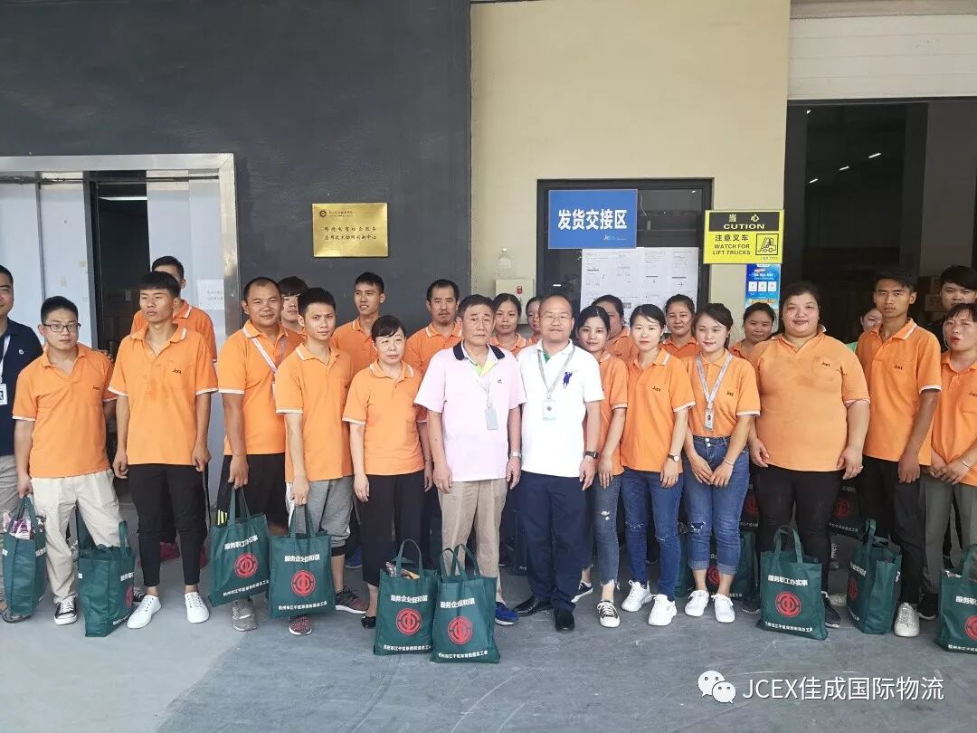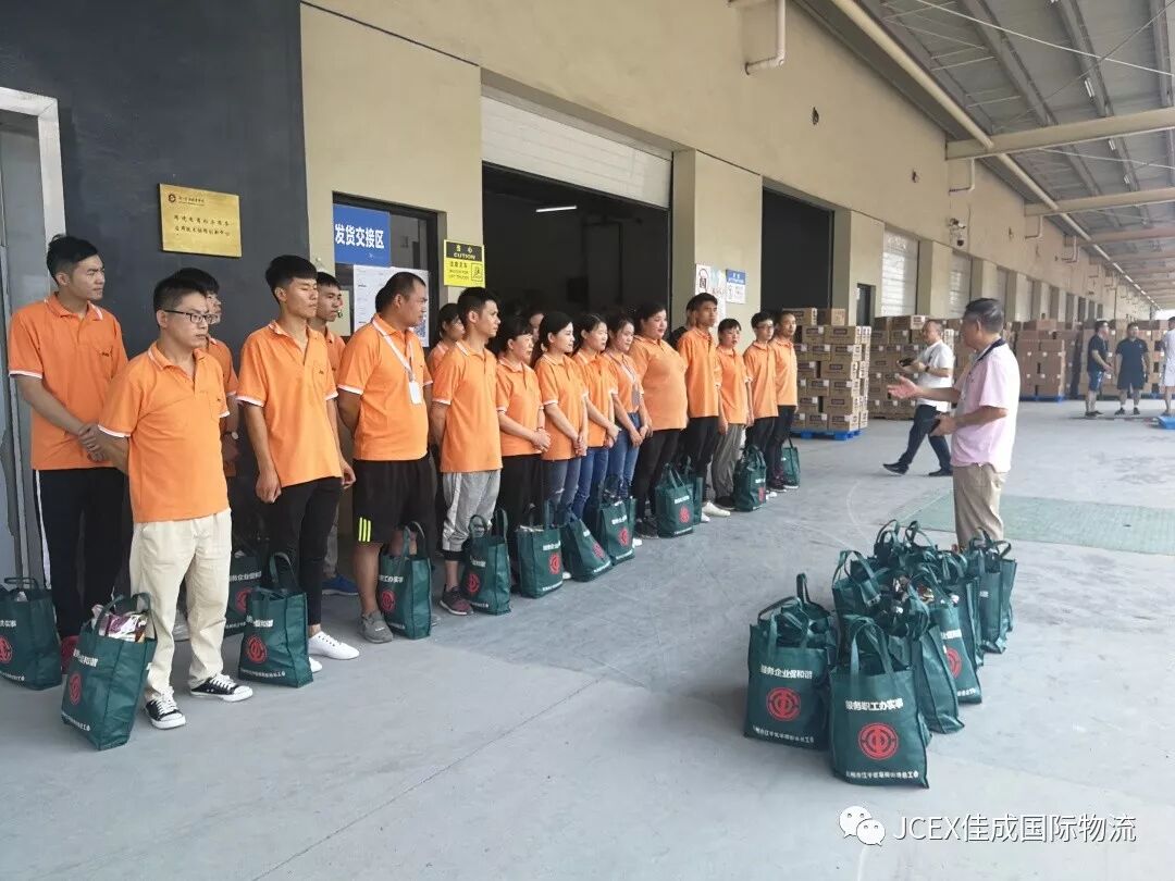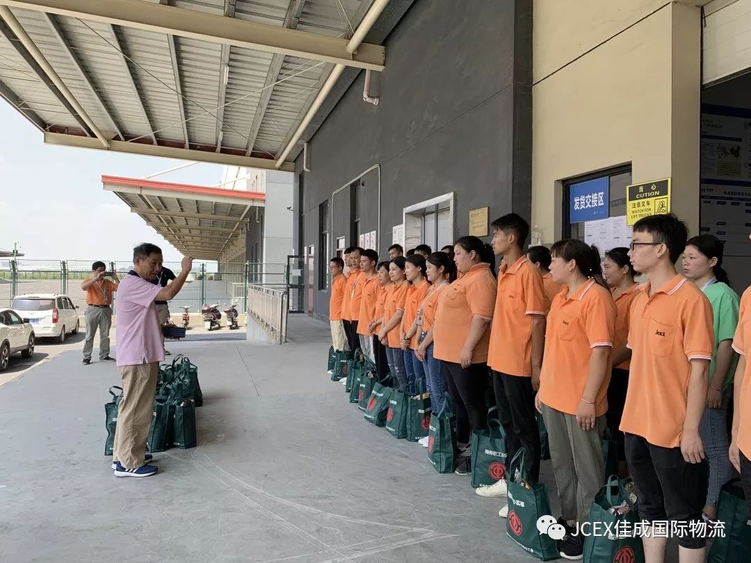 8月7日当天,佳成工会主席兼党支部书记,宋书记领着物资,与佳成企业发展办公室主任翟总一同走访萧山空港仓,开展高温慰问活动。